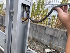チェーンゲートは下り切っていないときに通過してしまうなど、人為的な故障も多いのですが、気を付けて使用していても部品の劣化は免れません。