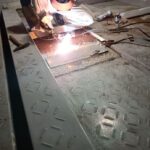 ケレン(塗装前に塗料の密着性を高めるためなどに行う下地処理作業)を行い、特に劣化している部分は鉄板を溶接して補強しました。